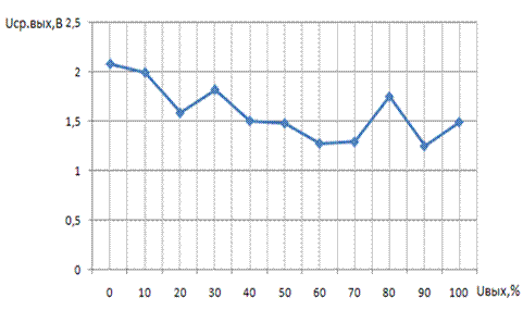 Рисунок 2.1.2 – Зависимость Таблица 2.1.2 – Данные для построения среднего значения выходного напряжения от относительной длительности импульса