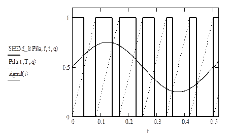 Рисунок 2.4.1 – Зависимость ШИМ – 1, пилообразного напряжения и входного сигнала.