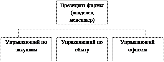 Для малого бизнеса наиболее простой является структура фирмы, находящейся в единоличном владении. Такая фирма обычно управляется собственником, который берет на себя весь риск предпринимательства. При этом, как правило, глава фирмы сам занимается финансами, снабжением, сбытом, ценами, рекламой. Организационная структура малой фирмы может выглядеть, например, так, как показано на схеме (рис. 1.1). В России обычно все функции управления в маленьких фирмах берет на себя ее владелец, т.е. происходит совмещение должностей. Однако это не всегда оправдано, поскольку отказ от делегирования полномочий влечет за собой дефицит времени на управленческую деятельность и в конечном итоге отрицательно сказывается на результатах работы. Руководитель фирмы должен не только заниматься текущими делами, но и смотреть вперед, видеть перспективы развития своего предприятия. Следовательно, главная задача руководителя фирмы заключается в том, чтобы с учетом всех факторов конкретного предприятия определить оптимальную систему управления в целях достижения успеха.