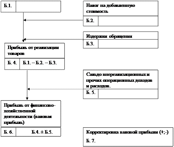 Рис. 2. Система показателей, определяемая бухгалтерской отчетностью (Отчет о прибылях и убытках). Таким образом, прибыль является финансовым результатом деятельности торгового предприятия, полученным в результате взаимодействия показателей: валового дохода, издержек обращения, внереализационных доходов и расходов. 1.2 Порядок формирования прибыли С учетом последовательности торгово-хозяйственной деятельности, особенностей формирования доходов и затрат процесс образования прибыли торгового предприятия может быть представлен следующим образом (рис. 3)