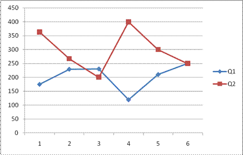 Построим графики, отражающие динамику объема партий товаров в зависимости от объема спроса; по оси абсцисс откладываем спрос W, а по оси ординат – соответствующие Q1 и Q2 : Рис. 1.1.