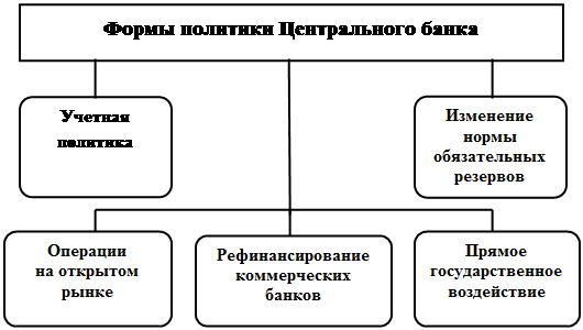 Рис. 2 Формы политики Центрального банка Все направления государственного регулирования банковской системы взаимно связаны. На определенных этапах государство может усиливать влияние отдельных направлений в зависимости от целей экономической политики. В недавнем прошлом коммерческие банки занимали особое положение в экономике западных стран. Государственные органы всегда поддерживали банки в случае кризиса ликвидности или при угрозе банкротства, чтобы гарантировать стабильность финансовой системы. Финансовое законодательство ограничивало сферу деятельности коммерческих банков, точно определив, что и как они могут делать, и одновременно предохраняло банки от появления конкурентов. Банки играли традиционную роль посредника между вкладчиками и заемщиками и обеспечивали функционирование платежной системы, практически не заботясь о применении новых методов и технологий. Однако последние четверть века характеризуются большими изменениями, происходящими в банковском деле, введением многочисленных новшеств в организации и методах управления банками и в формах обслуживания корпоративных и индивидуальных клиентов. Эти процессы в разной степени затронули все страны, включая Россию. Подчеркивая значимость происходящих перемен, эксперты нередко называют их «финансовой революцией». Складывавшиеся веками приемы и методы банковской деятельности, усложняясь, приобретают новые черты. В то же время возникают совершенно новые, оригинальные виды операций и услуг, не имевшие аналогов в мировой практике и ставшие возможными благодаря сложному сочетанию причин, влияющих на спрос и предложение денежного капитала. Прогрессивные изменения в банковском деле одновременно сопровождаются существенным возрастанием рисков, связанных с банковской деятельностью, что ставит проблему «риск - ликвидность» в центр управления банковскими операциями. Рыночная модель экономики предполагает, что прибыльность является важнейшим стимулом работы банков. Однако развитие рыночных отношений всегда связано с некоторой нестабильностью различных экономических параметров, что, соответственно, порождает серию банковских рисков при осуществлении коммерческими банками активных и пассивных операций. Постоянно меняются спрос и предложение, финансовые условия заключения сделок, платежеспособность клиентов и т.п. Поэтому коммерческий банк при совершении определенной сделки никогда не может быть до конца уверен в ее результате, или, другими словами, несет риск финансового результата сделки. Наиболее распространенными финансовыми рисками являются: - риски неплатежеспособности заемщика; - кредитный, процентный, валютный, несбалансированной ликвидности, технологический, законодательный, инфляции, финансового рычага. Риски в банковской практике - это опасность (возможность) потерь банка при наступлении определенных событий. Важнейшим способом преодоления или минимизации рисков является их регулирование, то есть поддержание оптимальных соотношений ликвидности и платежеспособности банка в процессе управления его активами и пассивами. Государственное регулирование путем принятия законодательных ограничений банковской деятельности на разных исторических этапах имело целью оградить банковское дело от чрезмерного риска, разрушител
