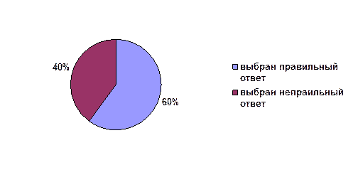 Рисунок 5 – Диаграмма, отражающая %-ое соотношение правильных и неправильных ответов на вопрос, предполагающий выявления свойства, не присущего организации На вопрос, с чьим именем связано начало научного становления организаторской мысли в обществе, 60% респондентов (12 чел.) дали верный ответ (вариант Б) Платон); 40% респондентов (8 чел.) ошиблись при выборе ответа – 30% (6 чел) из них посчитали основателем организаторской мысли Аристотеля (вариант А), 10% (2 чел.) – А. Файоля (вариант В). Процентное соотношение правильных и неправильных ответов, выбранных респондентами, проиллюстрировано на рис. 6.