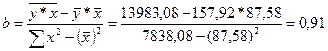 При увеличении фактора х на 1 % результирующий фактор у увеличится на 0,50% 5. Если независимый фактор х = 115 рублей, результирующий фактор у = 182,85 руб. Упрогноз = А+В*115 = 78,2+0,91*115=182,85 руб. При увеличении фактора х на 115 рублей результирующий фактор увеличится на 182,85 рублей. |