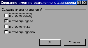 Рис 6.5. 5. Щелкните на кнопке ОК. Просмотреть списки имен блоков можно, щелкнув на стрелке «вниз», находящейся рядом с полем Имя. Каждая строка теперь стала блоком ячеек с именами своих заголовков.