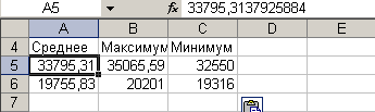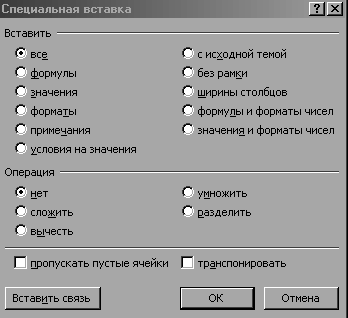 Рис 7.3. 6. В группе Вставить выберите опцию Значения и щелкните на кнопке ОК. Окно закроется, и в блок ячеек будут скопированы только численные значения. 7. По строке формул убедитесь, что в ячейках находятся только числа, а формул нет.
