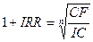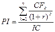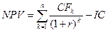 CF – денежные поступления от реализации проекта; r – ставка дисконтирования; n – срок инвестирования(продолжительность проекта); IC – величина первоначальной инвестиции.