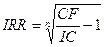 График пересекает ось ординат в точке, равной сумме всех элементов недисконтированного денежного потока, включая величину исходных инвестиций. Эта точка показывает величину прогнозной прибыли, без учета изменения стоимости денег во времени. Ось абсцисс пересекает график в точке, соответствующей внутренней норме окупаемости инвестиций. График функции NPV(r) инвестиции с неординарным денежным потоком может иметь произвольный вид и неоднократно пересекать ось х. Если инвестиционный проект генерирует денежный доход только один раз (в конце периода его действия), то внутреннюю норму прибыли для него можно определить, используя следующие уравнения: