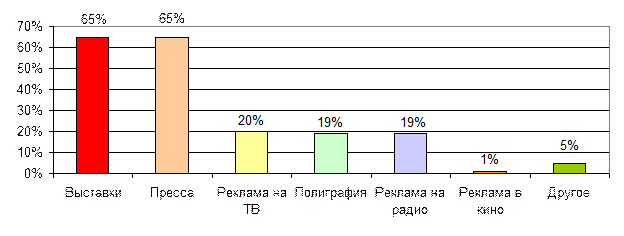 Рисунок 1.2 - Сравнительная эффективность инвестиций в продвижение продукции предприятия Принятие решения о финансировании выставочных мероприятий принимаются руководителям предприятий на основании сравнительной эффективности различных маркетинговых инструментов (рисунок 1.3)