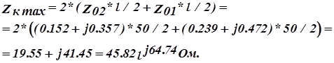 За расчетное значение Z к max принимается наибольшее из полученных Z к max =45.82 Ом. Установка по углу второй ступени фидера подстанции равна 64.74°. Тогда по (1.60):