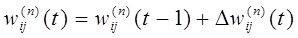 Рассчитать изменения весов Dw( N) слоя N по формуле: