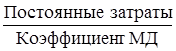 Линия выручки от реализации пересекает линию общих затрат в двух точках, т.е. в экономической модели существует два уровня безубыточности выпуска и реализации продукции, при которых выручка равна величине общих затрат. Математический метод. Данный метод основан на уравнении: Прибыль = Выручка – Переменные затраты – Постоянные затраты Представим некоторые показатели в виде произведения. Уравнение примет вид: Прибыль = (Цена за единицу * Количество единиц) – (Переменные затраты на единицу *Количество единиц) – Постоянные затраты Данное равенство можно представить в математической форме: П = Р*х - (b*х + a) или П = (Р - b)*х – а, где П – прибыль за анализируемый период; Р – цена реализации единицы продукции; х – объем производства (реализации) продукции; b – переменные затраты на единицу произведенной (реализованной) продукции; а – сумма постоянных затрат. Данное уравнение легко преобразовать в формулу для нахождения объема выпуска продукции, при котором достигается точка безубыточности при условии, что прибыль = 0: х = а / (Р - b) Для определения точки безубыточности в денежном выражении количество единиц продукции в точке безубыточности нужно умножить на цену единицы продукции. Метод уравнений можно использовать также при анализе влияния структурных изменений в ассортименте продукции. В этом случае реализация рассматривается как набор относительных долей продукции в общей сумме выручки от реализации. Если структура меняется, то объем выручки может достигать заданной величины, а прибыль может быть меньше. В этих условиях влияние на прибыль будет зависеть от того, как произошло изменение ассортимента – в сторону низкорентабельной или высокорентабельной продукции. Метод маржинального дохода. Метод маржинального дохода является разновидностью метода уравнений. Маржинальный доход – это доход, который получает предприятие от производства и реализации одного изделия. Он может быть найден двумя способами: МД = Выручка – Переменные затраты МД = Прибыль + Постоянные затраты Когда предприятие получает маржинальный доход, достаточный для покрытия постоянных издержек, достигается точка безубыточности: х = Коэффициент маржинального дохода – это отношение величины маржинального дохода к объему реализации продукции (для определения критического объема продаж в натуральном выражении) или к выручке от реализации (для определения критической величины выручки). Под средней величиной маржинального дохода понимают разницу между ценой продукции и средними переменными затратами. Средняя величина маржинального дохода отражает вклад единицы изделия в покрытие постоянных затрат и получение прибыли. Цена продукции при безубыточном объеме реализации может быть определена как отношение критической величины выручки к объему произведенной продукции в натуральном выражении. Часто бывает необходимо рассчитать безубыточный объем производства продукции при известном уровне запланированной прибыли от реализации продукции. В данном случае используется формула: х = (Постоянные затраты + Прибыль) / Маржинальный доход на единицу Для определения степени приближенности результатов деятельности предприятия к точке безубыточности определяется запас финансовой прочности (маржинальный запас прочности). Запас финансовой прочности отражает велич