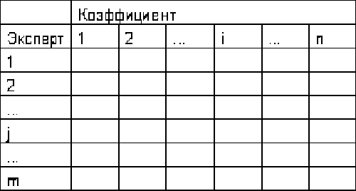 Рис. 6.3. Сводная анкета эксперты-коэффициенты Определяются среднеарифметические значения ненормированных коэффициентов для каждой группы характеристик: