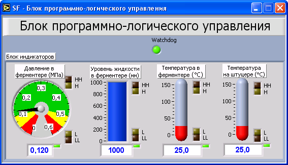Рис. 7.11. Экран блока программно-логического управления.