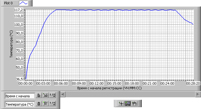 Рис 8.6. Температурная диаграмма В нижней части окна расположены элементы управления процессом регистрации температуры: