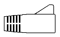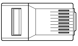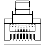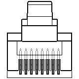 | Гнезда устанавливаются в сетевые карты, хабы, трансиверы и другие устройства. Сам разъем представляет собой ряд (8 шт.) пружинящих контактов и выемку для фиксатора вилки. Если смотреть на гнездо со стороны контактов, причем они располагаются снизу, то отсчет идет справа налево. | ![]() |