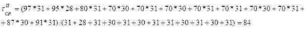 где τ1 , τ2 ,…, τ12 – средние температуры сетевой воды по месяцам года, определяемые по графику центрального качественного регулирования в зависимости от среднемесячных температур наружного воздуха [6]; n1 , n2 ,…, n12 – продолжительность в часах каждого месяца. Зная среднегодовую температуру наружного воздуха, по графику центрального качественного регулирования, либо по формулам (7), (8), определяем среднегодовые температуры воды в подающем и обратном трубопроводах. Данные расчета сводим в таблицу 11. Таблица 11. Среднемесячные температуры теплоносителей в тепловой сети.