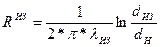 Термическое сопротивление грунта Rгр , (м∙ºС)/Вт, с учетом стенок канала при соотношении h/dЭ.К. >2 определяется по выражению