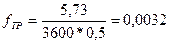 Площадь живого сечения трубок fтр , м2