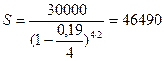 Таким образом, из таблицы 2 видно, что большую сумму дохода кредитор получит при начислении сложных процентов при антисипативном способе, но при этом при начислении по месяцам доход будет меньше, чем при начислении процентов по кварталам ((данный способ более выгоден для заемщика), а при декурсивном способе : при начислении по месяцам доход кредитора будет больше, чем при начислении процентов один раз в году (данный способ более выгоден для заемщика). Задание 3 Владелец малого предприятия предусматривает создание в течение 4 лет специального фонда развития в размере 200 тыс.р. Для этого ассигнуется ежегодно 40,1 тыс. р., которые помещаются в банк под 15 % годовых (сложные проценты). Какая сумма потребовалась бы предприятию для создания фонда в 200 тыс. р., если бы она была помещена в банк на 4 года под 15 % годовых? Решение: Ряд последовательных финансовых платежей, производимых через равные промежутки времени, называется финансовой рентой, или аннуитетом. Современная величина потока платежей – сумма всех его членов, уменьшенная на величину процентной ставки на определенный момент времени, совпадающий с началом потока платежей или предшествующий ему. На практике используются различные виды финансовых рент. Для годовой обычной ренты, платежи по которой производятся один раз в год, современная величина (А) определяется по формуле: A = Ran где R – член ренты; ап – коэффициент приведения ренты: