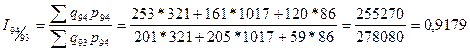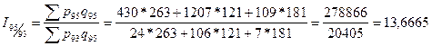 Расчет индекса физического объема продукции: