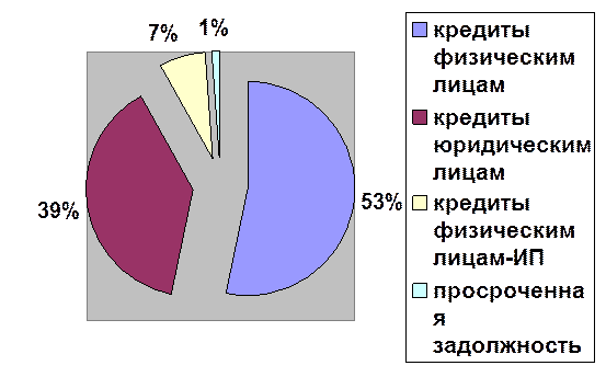 Рисунок 2.1 –Структура кредитного портфеля ВТБ 24(ЗАО) за 2007 г.