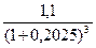 Рассчитаем период окупаемости данного предложения. Ставка дисконтирования равна 20,25% ( Ставка рефинансирования в 2010 г. составляет 7,75%, уровень инфляции 7,5% и предположим что премия за риск 5%). Первоначальный уровень инвестиций составит 2,4 млн. руб. В течении 4 лет планируется получать доход в размере 1,1 млн.руб. Для начала рассчитаем чистый дисконтированный доход NPV . NPV = -2,4 + = -2,4 + 0,9 + 0,8 + 0,6 + 0,5 = 0,4 тыс. руб. NPVбольше 0, следовательно проект выгоден. Рассчитаем дисконтируемый срок окупаемости DPP, в тыс.руб.