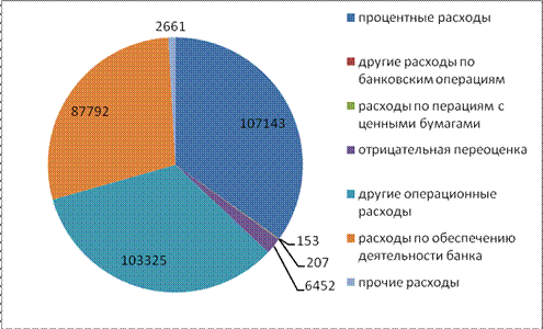 Из таблиц видно, что наибольший удельный вес занимают процентные расходы, а также другие операционные расходы.При этом произошло снижение удельного веса операционных расходов,если в 2007 году они составляли 33,6 % от общих расходов,в 2008 -30,4 %,а в 2009 –26,4 Произошло увеличение расходов в 2007 году по сравнению с 2006 годом на 144521 тыс. руб., а в 2008 году по сравнению с 2007 годом на 179950 тыс.руб. Для наглядности и полноты анализа построим диаграммы структуры расодов.