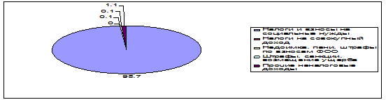 в) в 2008 году Рисунок 3- Структура доходов Жигулевского филиала ФСС На рисунке 3 видно, что в структуре доходов Жигулевского филиала ФСС РФ произошли существенные изменения в течение трех лет. Увеличился удельный вес поступлений налогов и взносов на социальные нужды. Данные изменения произошли в результате роста поступлений в абсолютном выражении, незначительно, но увеличилась доля прочих неналоговых поступлений. Таким образом, в результате проведенного анализа доходов Жигулевского филиала ФСС РФ было установлено, что в основном доходы филиала формируются за счет налогов и взносов на социальные нужды. Доля остальных составляющих незначительна и в 2008 году в совокупности составляет менее двух процентов. Считаем, что для объективной оценки деятельности исследуемого филиала и определении проблем, целесообразно провести анализ основной составляющей доходов. Данная статья доходов включает в себя: - единый социальный налог; - пени по единому социальному налогу; - штрафы по единому социальному налогу; - страховые взносы; - пени по обязательному страхованию от несчастных случаев на производстве; - штрафы по обязательному страхованию от несчастных случаев на производстве. Все расчеты целесообразно свести в таблицу 9. Таблица 9- Анализ налогов и взносов в ФСС (тыс. руб.)