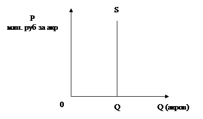 Рисунок 1 – Предложение земли Спрос на землю Прежде всего, следует отметить одну важную особенность: земля используется как в сельскохозяйственных, так и в несельскохозяйственных целях, что обусловливает существование двух видов спроса на землю: сельскохозяйственный и несельскохозяйственный спрос. D = Dсх + Dнесх, где в — совокупный спрос, Dсх — сельскохозяйственный спрос, Dнесх — несельскохозяйственный спрос. Если на оси абсцисс мы отложим количество акров земли, а на оси ординат — цену за акр земли, то кривая сельскохозяйственного спроса на землю Dcx будет иметь отрицательный наклон (Рис.2). Это связано с тем, что по мере вовлечения земли в хозяйственный оборот (при данном уровне развития техники и технологии) мы должны будем переходить от лучших по плодородию земель к средним и даже худшим.