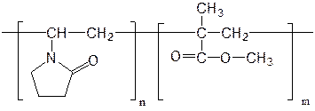 Рис. 2.3. Две цепочки гидроксиэтилметакрилата Полимерный каркас может содержать различные гидрофильные группы и поперечные сшивки, которые и определяют равновесное состояние наполненного водой гидрогеля. Гидрофильными группами могут быть гидроксильные, амидные, лактамные и карбоксильные группы. Обычно используемым для сшивок агентом является этиленгликоль-диметакрилат (EGDMA). Без сшивок большинство гидрофильных полимеров растворилось бы в воде. Способность гидрогеля всасывать воду приводит к образованию водных каналов для передачи кислорода. Первые гидрогельные линзы были изготовлены чешским ученым Отто Вихтерле из гидрогеля рНЕМА (поли-2-гидроксиэтилметакрилат (рис. 2.3)); они оказались слишком толстыми и пропускали кислорода лишь ненамного больше, чем жесткие газонепроницаемые линзы из РММА (полиметилметакрилата). Революция в мире контактных линз произошла, когда стало возможным изготовление тонких линз с большой кислородопроницаемостью. Появление этих линз стимулировало поиски новых гидрогельных материалов, которые стали бы еще более физиологически совершенными. Строение гидрогелей Гидрогели представляют собой поперечно сшитые пористые, хорошо набухающие, но не растворяющиеся в воде полимеры. Обычно их получают полимеризацией водорастворимых ненасыщенных соединений в присутствии бифункционального сшивающего агента. В своем исходном состоянии до гидратации они похожи на жесткие полимеры - негибкие, ломкие и жесткие. При погружении в воду гидроксильные группы сухого полимера притягивают молекулы воды, и полимер поглощает воду. Объем поглощенной воды зависит от количества гидроксильных компонентов в его структуре. При насыщении водой полимер становится мягким и гибким. Гидрогели имеют аморфное строение. Структура гидрогеля пронизана многочисленными порами, размеры и число которых у разных материалов сильно отличаются. Однако размеры пор (0,5-3,5 мкм) слишком малы для проникновения микроорганизмов, если структура полимера не повреждена. В то же время, многие ионы, консервирующие вещества и растворимые в воде препараты типа стероидов и антибиотиков могут с легкостью диффундировать как в гидрогель, так и в обратном направлении. Основные характеристики МКЛ Содержание воды в контактной линзе является одним из главных параметров МКЛ. Высокое содержание воды обеспечивает комфортность ношения линзы и снабжение роговицы кислородом. Вода обеспечивает продвижение кислорода через материал гидрогелевой линзы. Молекулы кислорода растворяются в воде и перемещаются через материал линзы к роговице. Кислородная проницаемость критична для мягких контактных линз, так как «слезный насос» недостаточно эффективен для обеспечения роговицы кислородом. Большая часть необходимого роговице кислорода поступает сквозь линзу. Для характеристики кислородной проницаемости материала (но не конкретной линзы определенной толщины) используется коэффициент кислородной проницаемости (Dk). (Здесь в - коэффициент диффузии, k - коэффициент растворимости; в практике врача эти параметры по отдельности практически не встречаются). Кислородная проницаемость материала прямо пропорциональна содержанию в нем воды и не зависит от толщины материала. Для характеристики способности конкретной линзы пропускать кислород используется коэ