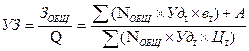 6.2. Анализ затрат на рубль произведенной продукции Важный обобщающий показатель себестоимости продукции — затраты на рубль продукции, который выгоден тем, что, во-первых, очень универсальный: может рассчитываться в любой отрасли производства и, во-вторых, наглядно показывает прямую связь между себестоимостью и прибылью. Определятся он отношением общей суммы затрат на производство и реализацию продукции к стоимости произведенной продукции в действующих ценах. В процессе анализа следует изучить динамику затрат на рубль продукции и провести межхозяйственные сравнения по этому показателю. Следующий этап анализа — изучение выполнения плана и определение влияния факторов на изменение уровня данного показателя. Затраты на рубль продукции непосредственно зависят от изменения общей суммы затрат на производство и реализацию продукции (ЗОБЩ ) и от изменения стоимости произведенной продукции (Q ). На общую сумму затрат оказывают влияние объем производства продукции (N ОБЩ ), ее структура изменение переменных (в i ) и постоянных затрат (A ), которые в свою очередь могут увеличиться или уменьшиться за счет уровня ресурсоемкости продукции и цен на потребленные ресурсы. Стоимость произведенной продукции зависит от объема выпуска (N ОБЩ ), его структуры (Уд i ), и цен на продукцию (Ц i ). Факторная модель удельных затрат на рубль продукции (УЗ) выглядит следующим образом: