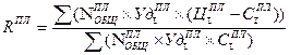 ΔRОБЩ =RФ -RПЛ , в т.ч.: ΔR(N)=RУСЛ1 -RПЛ , ΔR(Уд)=RУСЛ2 –RУСЛ1 , ΔR(Ц)=RУСЛ3 –RУСЛ2 , ΔR(С)=RФ –RУСЛ3 . Затем необходимо сделать факторный анализ рентабельно сти по каждому виду продукции. Уровень рентабельности отдельных видов продукции зависит от изменения среднереализационных цен и себестоимости единицы продукции: