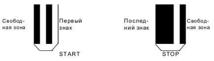 Рис. 2. Знаки «СТАРТ» и «СТОП» На рисунке 3 приведён законченный символ штрихового кода для числа 1234 с представлением необходимых свободных зон.