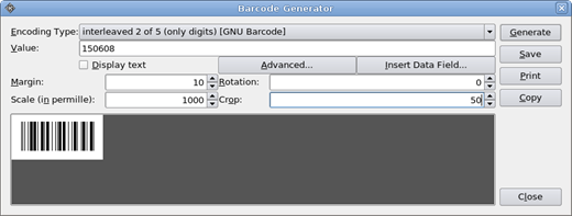 Рис. 4. Программа Kbarcode Запустим Barcode Generator, сгенерируем штрих-код из даты «15.06.08» и разберем его по составу.