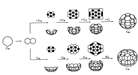 Рис.2 Схема образования фуллерена С60 согласно модели “сборки из колец”[5]