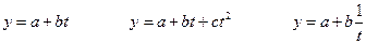 Гиперболическую и показательную можно линеаризовать и применить МНК к этим функциям как к линейным. Для гиперболической функции введем новую переменную: