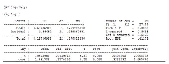 Применим ПО MS Excel 2003 и Stata 7.0. Посчитаем коэффициент корреляции:
