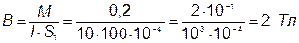 де В – магнітна індукція, Тл ; М – обертаючий момент, Н ×м ; I – сила струму, А ; S – площа рамки, м 2 .