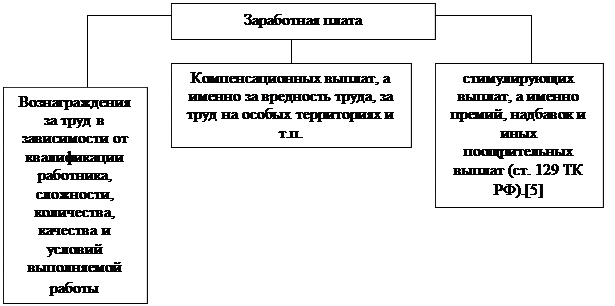 Все внутренние нормативные документы должны быть подвергнуты контролю с использованием следующих методов аудита: 1) наличие внутренних нормативных документов по заработной плате; 2) контроль на соответствие действующему Трудовому кодексу РФ и Налоговому кодексу РФ; 3) полнота отражения положений, регулирующих вопросы организации учета заработной платы, выплат, режима работы, соблюдения трудовой дисциплины. 1.3 ЭТАПЫ ПРОВЕДЕНИЯ АУДИТА РАСЧЕТОВ С ПЕРСОНАЛОМ ПО ОПЛАТЕ ТРУДА Заработная плата работника складывается из следующих составляющих, которые представлены на схеме 1.4