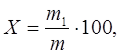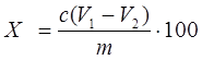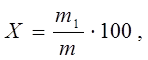 где m1 – масса железа, найденная по градуировочному графику, г; m - масса навески, соответствующая аликвотной части раствора пробы, г. Массовую долю железа Х1 , %, определяемую методом сравнения, вычисляют по формуле: