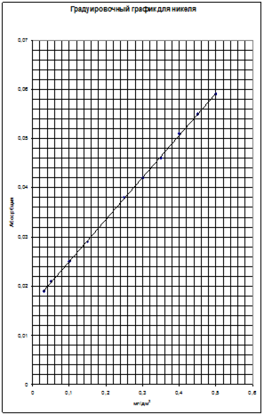 Коэффициент корреляции – R = 0,999819876. 3.8 Построение градуировочной зависимости для никеля