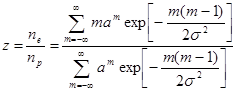 Уравнения (1.2.5) и (1.2.9) связывают концентрацию нейтральных частиц КДФ в плазмозоле с концентрациями m –кратно ионизованных положительных(1.2.9) макрочастиц. Совместно с законом сохранения заряда и условием сохранения полного числа КЧ в плазмозоле (np – концентрация частиц КДФ) они позволяют определить замкнутую систему уравнений термоионизационного равновесия в плазмозоле идентичных частиц. Из (1.2.10) и (1.2.11) можно найти среднюю ионизацию частиц КДФ, т.е. их среднее зарядовое число: и относительную концентрацию электронейтральных макрочастиц в системе