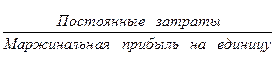 Объем производства в критической точке Объем производства Рис. 3.графическая иллюстрация метода маржинального дохода Критическая точка может быть определена как точка, в которой разница между маржинальной прибылью и постоянными затратами равна нулю, или как точка, в которой маржинальная прибыль равна постоянным затратам. Уравнение критической точки при маржинальном подходе в терминах единиц продажи будет иметь вид: