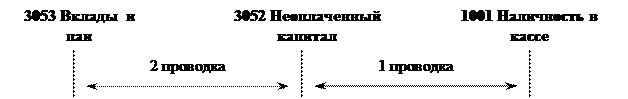 Рис. 2. Схема проводок при расчетах по доходам предприятия По первой проводке прибыль, оставшаяся после налоговых платежей и формирования необходимых фондов, направляется для расчетов с участниками.По второй проводке участникам, вместе с начислением заработной платы, начисляется их часть дохода, затем производится выплата этой части дохода через кассу, либо перечисление на личный вклад через сбербанк.Учет резервного капитала ведется на пассивных счетах подраздела 3500 «Резервный капитал», в который входят следующие счета: 3510 «Резервный капитал, установленный законодательством» и 3541 «Прочий резервный капитал».В соответствии с Указом Президента Республики Казахстан, имеющим силу Закона, «О хозяйственных товариществах» от 2 мая 1995 года № 2255 открытое акционерное общество обязано создать резервный капитал в размере не менее 10% уставного капитала. В этих же размерах устанавливается размер резервного капитала в других видах хозяйственных товариществ. При создании резервного капитала дебетуют счет 3580 «Нераспределенный доход отчетного года» и кредитуют счет 3510 «Резервный капитал, установленный законодательством».Использование средств резервного капитала отражается записями по дебету счета 3510 «Резервный капитал, установленный законодательством» и кредиту следующих счетов:3003 «Расчеты по простым акциям», 3027 «Расчеты по привилегированным акциям» и 1429 «Прочая кредиторская задолженность и начисления» - на сумму начисленных дивидендов и доходов акционеров товариществ при отсутствии средств для выплаты дивидендов по привилегированным акциям или недостаточности дохода отчетного года, выплачиваемых по решению учредителей за счет резервного капитала; 2. УЧЕТ СОБСТВЕННОГО КАПИТАЛА ФИЛИАЛА АО 2.1 Краткая характеристика филиала АО АО– универсальный, инновационный и высокотехнологичный Банк, строящий свой бизнес на основе устойчивого развития, традиций партнерства, эффективной системы управления, использования передовых технологий и обслуживания клиентов на уровне мировых стандартов, способствующий развитию экономики Республики Казахстан и действующий в интересах своих клиентов, акционеров и персонала. АО» основан в 2007 году в г. Алматы. 16 ноября 2007 года была получена лицензия на право осуществления банковских операции № 256. 11 марта 2008 года открыт филиал АО» по Северо-Казахстанской области. Первый операционный день Банка проводился именно на филиале по Северо-Казахстанской области. Основным видом деятельности данного предприятия является осуществление банковских операций. Свою деятельность Банк осуществляет согласно «Закона РК о банках и банковской деятельности», и иными законодательными и нормативно-правовыми актами. Согласно штатного расписания, численность сотрудников филиала составляет 11 человек, в том числе директор предприятия, главный бухгалтер филиала, 5 менеджеров, 2 кассира и 2 сотрудника МОП. Обслуживанием клиентов на филиале занимается операционный и кредитный департаменты. В обязанности кредитного департамента входит работа по выдаче, учету и возврату кредитов. Операционный департамент занимается обслуживанием юридических и физических лиц в части ведения текущих и сберегательных счетов клиентов, осуществлением дилинговых операций, переводных операций, а также операций с иностранной валютой