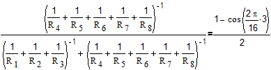 После расчета и округления до ближайших номинальных значений получаем: R1=R8=150КОм (МЛТ-0.25-150 кОм ±5%); R2=R7=47КОм (МЛТ-0.25-47 кОм ±5%) ; R3=R6=33КОм (МЛТ-0.25-33 кОм ±5%) ; R4=R5=27КОм (МЛТ-0.25-27 кОм ±5%);