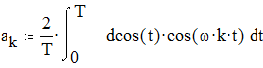 Рассмотрим спектр сигнала на выходе ФС. Для этого применим разложение в ряд Фурье для периодического сигнала dcos(t). Найдем коэффициенты для разложения в ряд по косинусам: