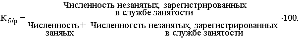 Он использовался как показатель резерва рабочей сипы в условиях ее дефицита. С признанием безработицы по аналогии с прежней практикой для определения и анализа уровня безработицы стали соотносить число безработных с количеством трудоспособных в трудоспособном возрасте, назвав данный показатель коэффициентом безработицы. При таком подходе игнорируется рыночный характер движения рабочей силы, когда на занятость влияют спрос и предложение. Часть трудоспособного населения по разным причинам спроса на рабочие места не предъявляет, а поэтому на рынок труда не выходит (домохозяйки, учащаяся молодежь. граждане, имеющие нетрудовые источники дохода, и другие категории населения). В мировой практике коэффициент безработицы рассчитывается по следующей формуле: