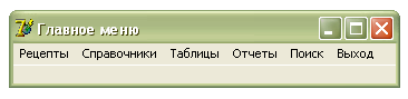 При выборе подпункта “Справочник рецептов” появляется окно: