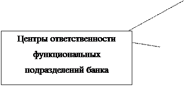 Рис.1. Основные факторы текущего регулирования доходности Д= РСР + Мд + И* (1+ Мд ) + П, где (2) Д– договорный процент по размещению ресурсов; РСР– реальная стоимость ресурсов; Мд –коэффициент достаточной процентной маржи; И– темпы инфляции, ожидаемые в течение срока ссуды. 6. Метод управления стоимостью капитала. Под стоимостью капитала понимается ожидаемая инвесторами ставка доходности, которая также называется ставкой дисконтирования ожидаемого чистого денежного потока в текущую стоимость. Ставка доходности(дисконтирования) представляет собой средневзвешенную стоимость(WACC) элементов капитала: заёмного капитала; капитала в части стоимости обыкновенных акций; капитала в части стоимости привилегированных акций. Стоимость заёмного капитала определяется: Кd =Кd ( pt ) * (1-t),где (3) Кd – стоимость заёмного капитала; Кd ( pt ) –процентная ставка; t-ставка налога. Стоимость капитала в части обыкновенных акций соответствует их рыночной доходности, которая зависит от размера дивидендов и доходности акций соответствующего класса риска. Расчёт средневзвешенной стоимости капитала определяется по формуле: WACC=(Кс * Wc ) +( Кp * Wp )+ [Кd ( pt ) (1-t)* Wd ],где (4) Кс –стоимость акционерного капитала в части обыкновенных акций; Wc – доля обыкновенных акций в капитале банка; Кp –стоимость акционерного капитала в части привилегированных акций; Wp – доля привилегированных акций в капитале банка; Wd –доля заёмного (привлечённого) капитала банка. 7. Управление рентабельностью отдельных направлений деятельности банка. Данный метод разработан для управления доходностью коммерческого банка на низшем уровне основывается на выделении центров ответственности- функциональных подразделений банка, ответственных за определённые за определённые направления деятельности банка, т.е. за группу однородных банковских продуктов, и финансовый результат, полученный по ним. Примеры центров ответственности представлены на рисунке 2.